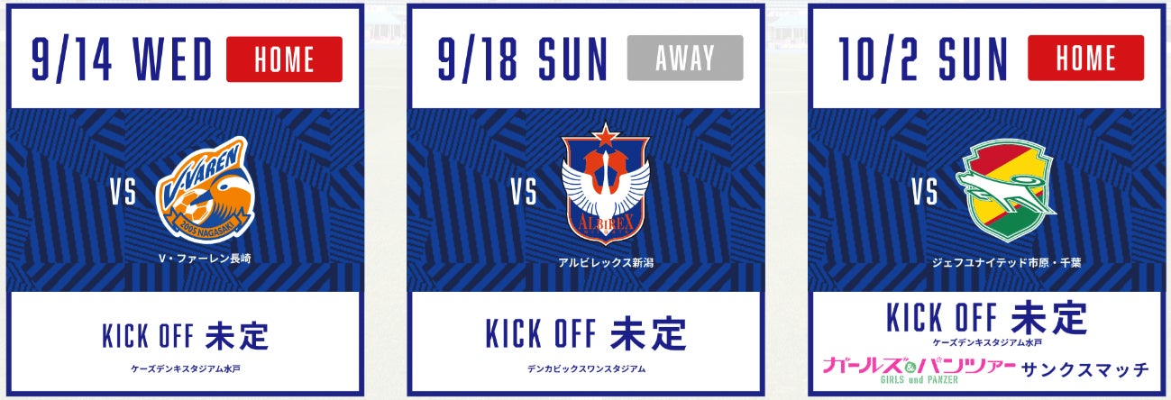 また、10月2日(日)ジェフユナイテッド市原・千葉戦では、ガールズ&パンツァー サンクスマッチと題して、試合当日は各種イベントも企画しておりますので、情報公開まで今しばらくお待ちください。