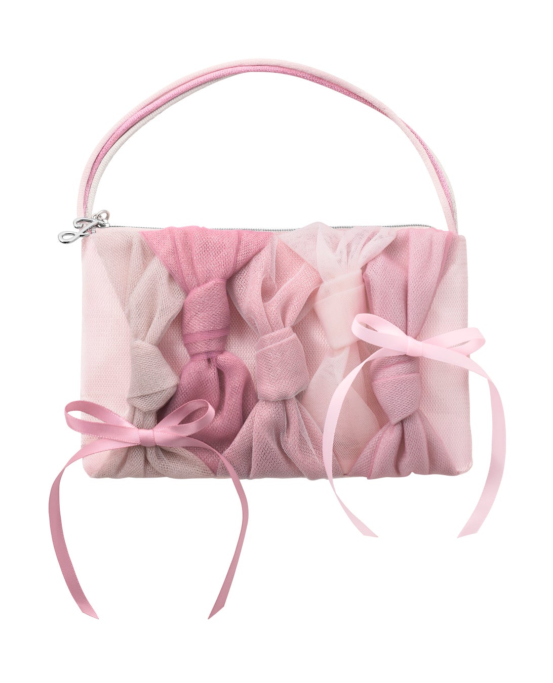 ファッションショーで持ち歩くのに適したクラッチバッグのようなデザイン。ランウェイを歩く色とりどりのファッションに身を包んだ人々をイメージして、多彩なピンクトーンのリボンで構成しています。ショー会場でも持ち歩けるよう、持ち手をつけてコンパクトに仕上げました。