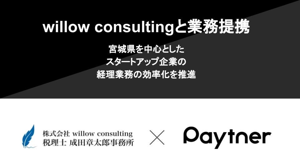 ペイトナー、willow consultingと業務提携、宮城県のスタートアップ・中小企業の経理業務の効率化を強化