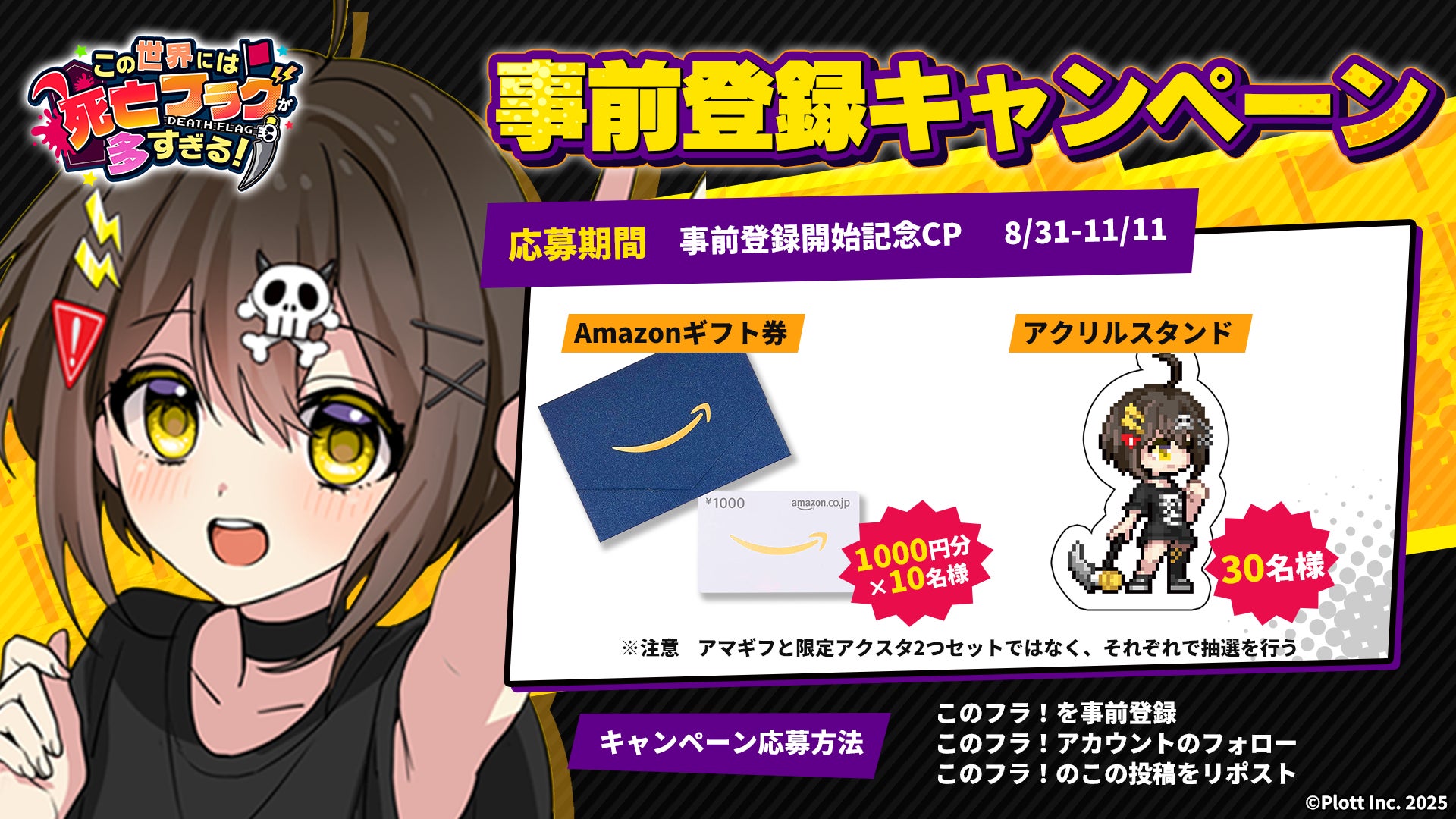 『全力回避フラグちゃん! 』のスマホゲーム『この世界には死亡フラグが多すぎる!』(略称:このフラ)が2025年冬にリリースされることが決定いたしました。それに伴い、事前登録が8月31日(日)より開始したことをお知らせいたします。