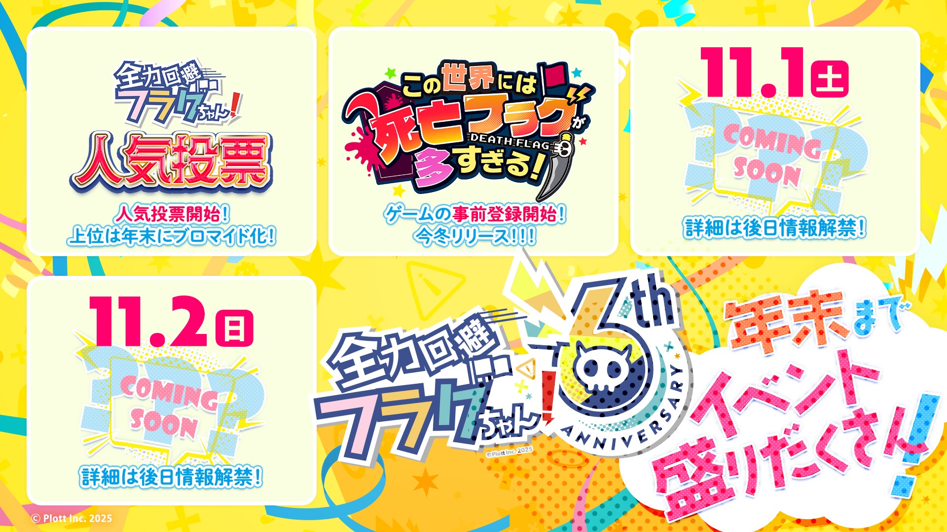 IPコンテンツの企画・制作・ビジネス展開を行う株式会社Plott(本社:東京都千代田区、代表取締役:奥野翔太、以下 「Plott」)は、運営するショートアニメ『全力回避フラグちゃん! 』が配信開始から6周年を迎えたことを記念して、「全力回避フラグちゃん! 6周年プロジェクト」が始動することをお知らせいたします。