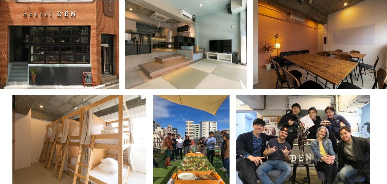 藤井不動産は、 “旅人の巣”をコンセプトに、さまざまな経験やバックグランドを持つ旅人たちが共に会話や生活をすることで、様々な価値観や文化を共有する場所として、「hostel DEN」を運営しています。東京都心の新日本橋駅や神田駅、小伝馬町駅から徒歩数分という立地にあり、ドミトリータイプの快適な居室やスタイリッシュなリビング&ダイニング、さまざまな用途に使えるルーフトップやコワーキングスペースなどの充実した付帯設備にも関わらず1泊¥2,200〜というリーズナブルな価格が若者を中心とするユーザーから高い支持を得ています。