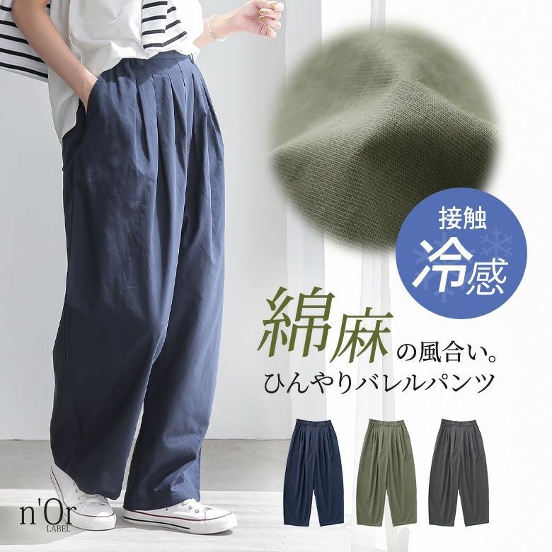 n'OrLABEL綿麻混冷感バレルレッグパンツ