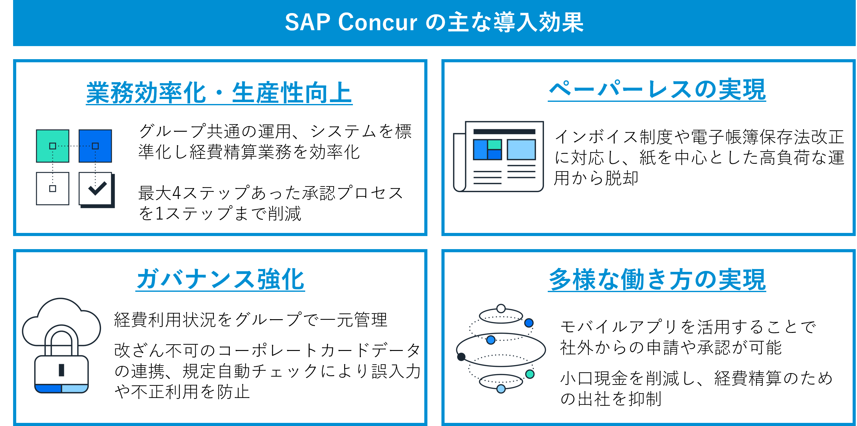 SAP Concurは、出張、経費、請求書管理を統合したソリューションを提供する世界有数のブランドであり、これらのプロセスの簡素化と自動化を追求しています。高い評価を得ているSAP Concurのモバイルアプリは、社員の出張をサポートし、経費を自動で入力し、請求書の承認を自動化します。AIを使いリアルタイムのデータを統合、分析することで、効率的な支出管理を行うことが可能です。SAP Concurのソリューションは、手間の掛かる作業をなくし、お客様の業務効率化に貢献、最高の状態でビジネスを進めることができるようサポートします。詳細はconcur.comまたはSAP Concur ブログをご覧ください。