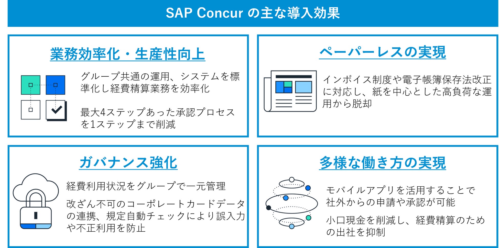世界最大の出張・経費管理クラウド SAP Concur の日本法人で、2010年10月に設立されました。『Concur Expense(経費精算・経費管理)』・『Concur Travel(出張管理)』・『Concur Invoice(請求書管理)』を中心に企業の間接費管理の高度化と従業員の働き方改革を支援するクラウドサービス群を提供しています。