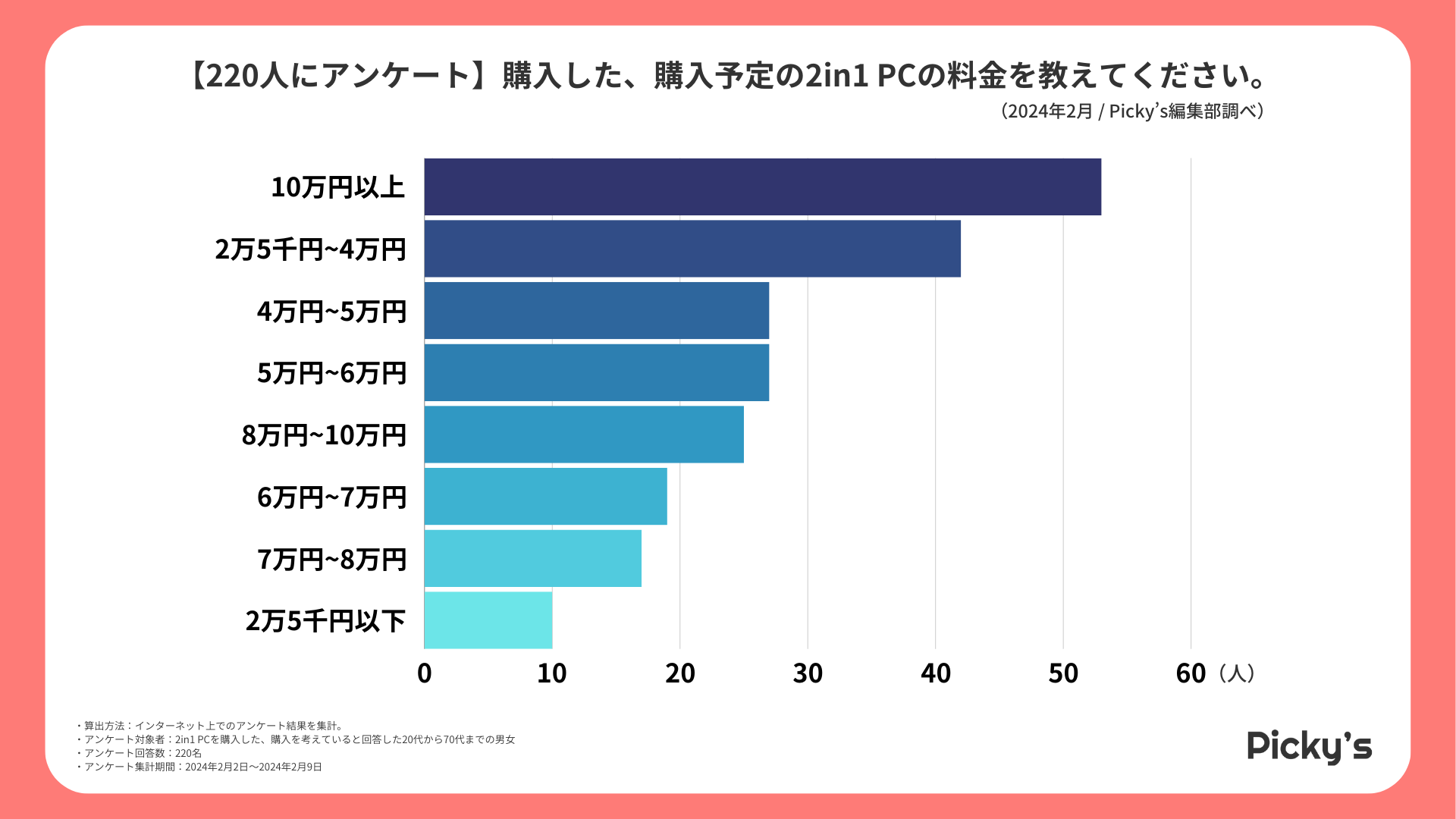 約4分の1の方が10万円以上の2in1 PCを選んでいることが分かります。