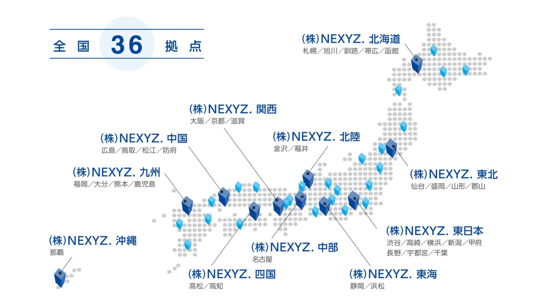 株式会社NEXYZ.は、2012年より初期投資0円で導入可能な設備支援サービス「ネクシーズZERO」を提供し、これまでに10万件を超える導入実績を誇ります。現在、104社を超える銀行・信用金庫との業務提携を実現し、11の地域子会社・36拠点を拠点に、地域に根ざした事業展開を行っております。