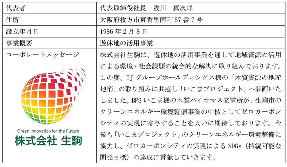 NTTアノードエナジー株式会社(本社:東京都港区、代表取締役社長:岸本 照之)、住友林業株式会社(本社:東京都千代田区、代表取締役社長:光吉 敏郎)、株式会社長谷工コーポレーション(本社:東京都港区、代表取締役社長:池上 一夫)、東京センチュリー株式会社(本社:東京都千代田区、代表取締役社長:馬場 高一)、フォレストエナジー株式会社(本社:東京都品川区、代表取締役社長:沼 真吾)、株式会社モリショウ(本社:大分県日田市、代表取締役社長:森山 和浩)、大成ロテック株式会社(本社:東京都新宿区、代表取締役社長:加賀田 健司)、株式会社生駒(本社:大阪府枚方市、代表取締役社長:浅川 真次郎)は、匿名組合出資を行った奈良県生駒市において行う木質バイオマス発電事業(以下、いこまプロジェクト、事業者:TJグループホールディングス株式会社 本社:大阪府大阪市 代表取締役社長:東野 隼士)における木質バイオマス発電所の建設が完工し、4月1日から商業運転を開始する予定となりましたのでお知らせいたします。
