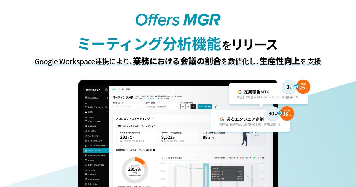 株式会社overflow(本社:東京都港区、代表取締役: 鈴木裕斗・田中慎 以下、overflow)が運営するプロダクト開発組織の生産性向上を最大化するサービス「Offers MGR(オファーズマネージャー)」において、「ミーティング分析機能」を新たにリリースしたことをお知らせいたします。