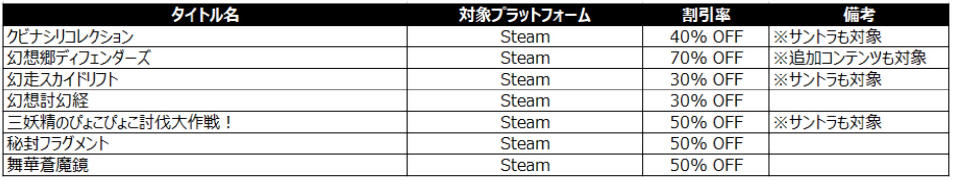 PhoenixxよりSteamにて配信中の「東方Project」関連タイトルが最大70%OFFで購入いただけるスペシャルセールの開催が決定いたしました!この機会にぜひご購入ください!