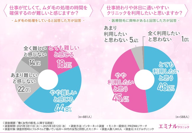 そこで今回、医療脱毛の「エミナルクリニック」は、フルタイムで働いている20~30代の女性を対象に、「働く女性の脱毛」に関する調査を実施しました。