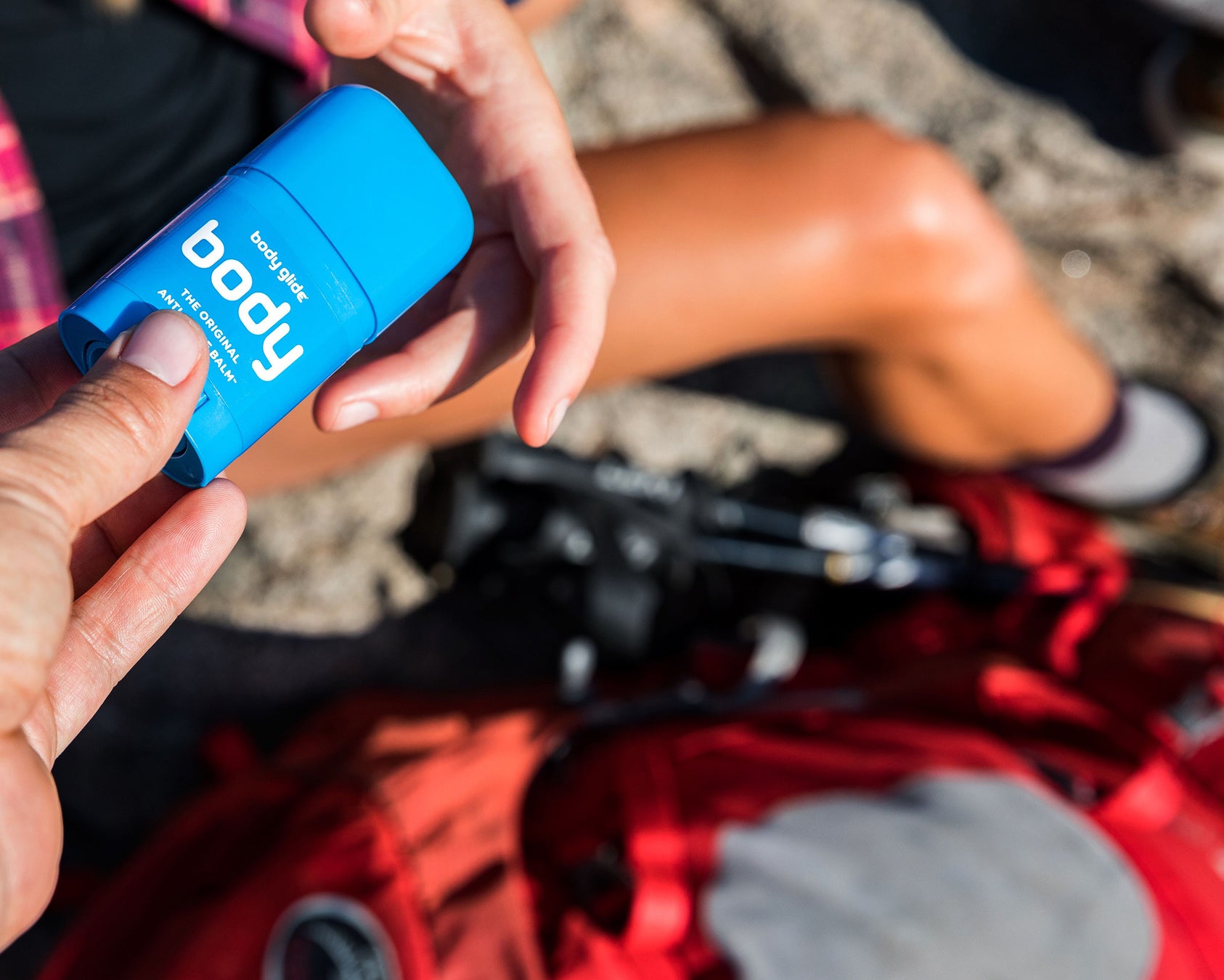 チューブタイプの商品が主流の中、Body Glide®はスティックタイプで手が汚れません。