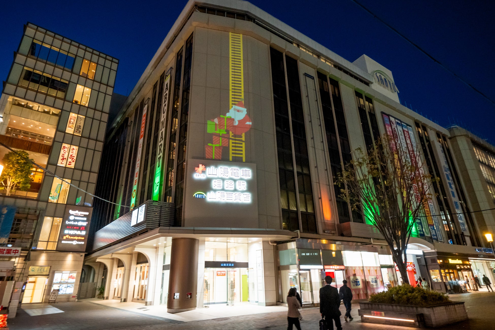 山陽百貨店および周辺施設を舞台に、クリスマスシーズンを彩る複合型演出イベントを展開します。山陽百貨店の外壁や本館南側通路、屋外広場をクリスマスらしく華やかに装飾。さらにプロジェクションマッピングやAR(拡張現実)を駆使した複合的な映像演出を体験いただけます。