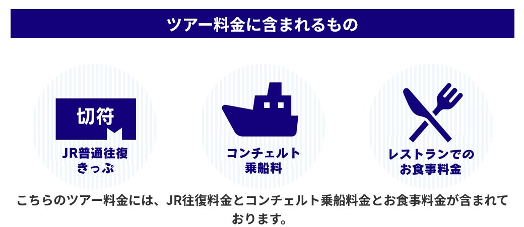 JR往復きっぷとコンチェルト乗船料とお食事がセットになったパックツアー♪