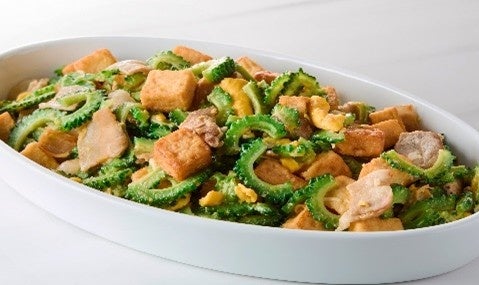 苦みを抑えたゴーヤと厚揚げを卵でとじたゴーヤチャンプルー。