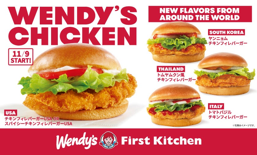 個性豊かなチキンバーガーシリーズ第2弾!ヤンニョムチキン·トムヤムクンなど世界各国の味をソースでイメージ 11/9(木)からウェンディーズ·ファーストキッチン全店で販売!