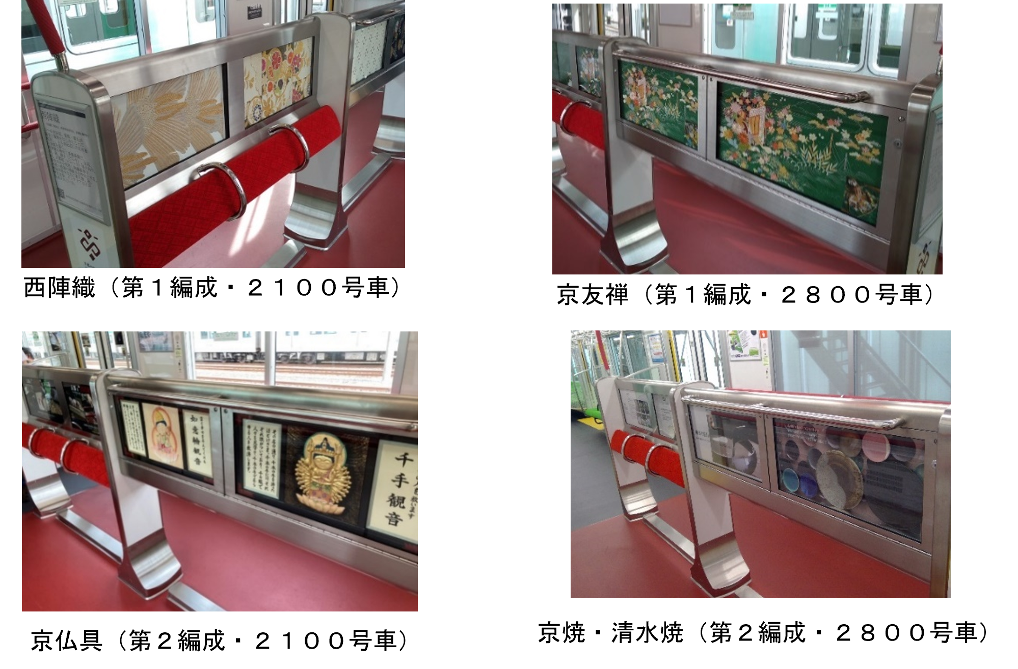 デザイン懇談会で策定された「京都ならではの地下鉄に」のコンセプトを基に外観・内装デザインに西陣織や京友禅などの京都の伝統産業素材・技法を活用しました。素材は京都市指定の伝統産業74品目の中から飾り付ける素材を選定しています。