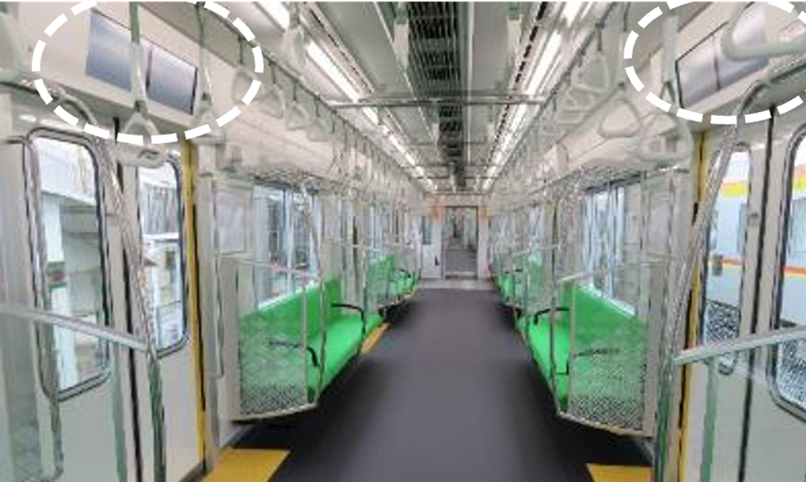 現行車両と比べて画面サイズを拡大した案内表示器を全扉に設置(現行車両は片方の扉に設置)し、耳の不自由な方をはじめとするお客様にとって、運行情報や非常時の案内などがより見やすくなりました。