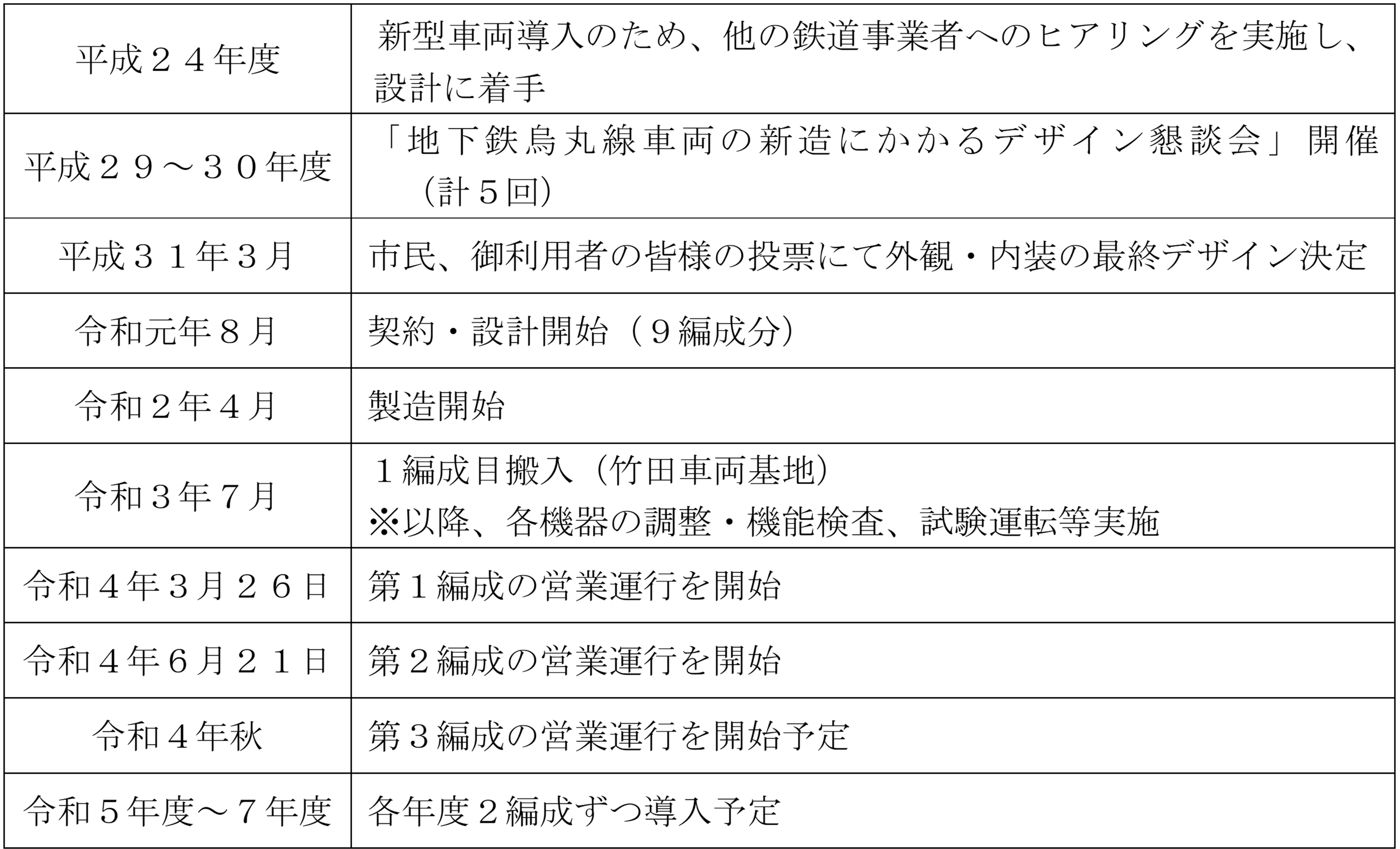 京都市交通局では、現行の地下鉄烏丸線車両20編成のうち、開業以来40年以上使用し老朽化した9編成について、令和3年度から令和7年度にかけて20系車両に更新することとしており、現在、2編成が営業運行を開始しています。