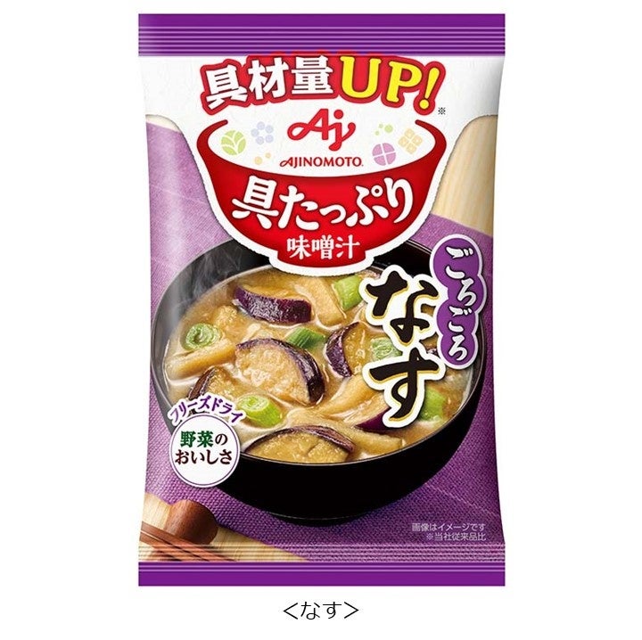 フリーズドライ味噌汁に生活者が求める価値である“具材”の配合量をアップし、満足感・食べ応えを向上させました。