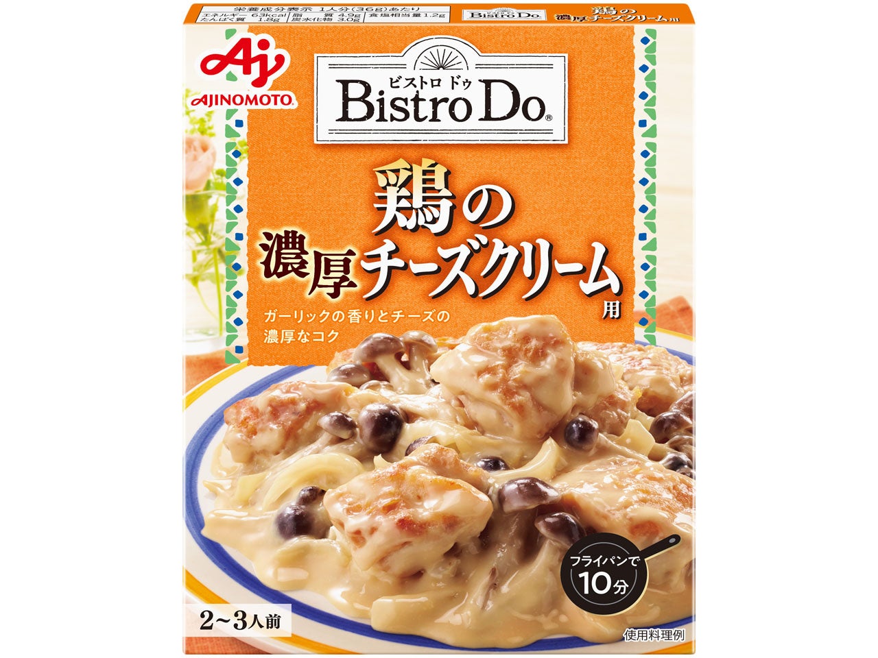 食欲をそそるガーリックの香りと、3種類のチーズと生クリームが溶け込んだ濃厚でコク深い味わいが特長のソースです。鶏もも肉とたまねぎ、しめじを用意するだけで、大人も子供も喜ぶ洋風のメインおかずが楽しめます。