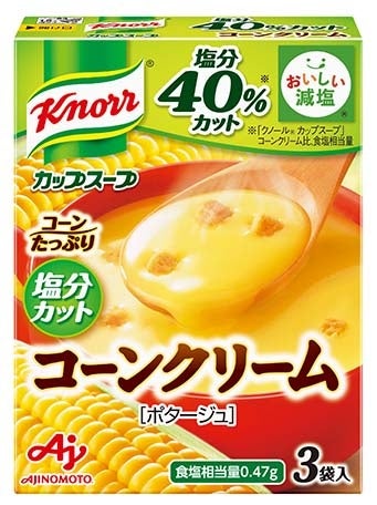 塩分40%カットはそのままに、コーンパウダー増量と独自素材を使用することで“減塩なのにおいしい”をさらにレベルアップしました。