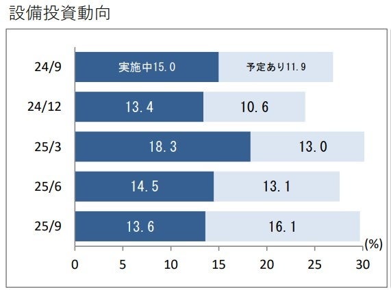 設備投資回復も業種間バラツキ:「予定あり」16.1%(前回比+3.0ポイント)
