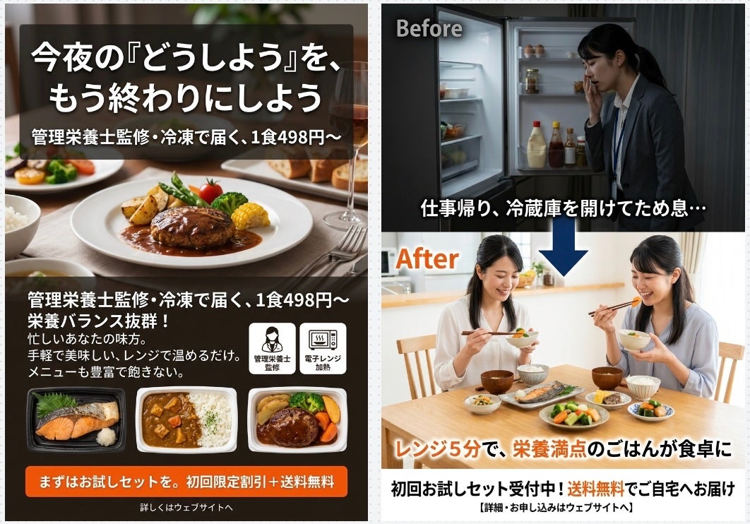 ・Before-After型:課題解決の文脈で訴求し、購入動機を論理的に伝えるレイアウト