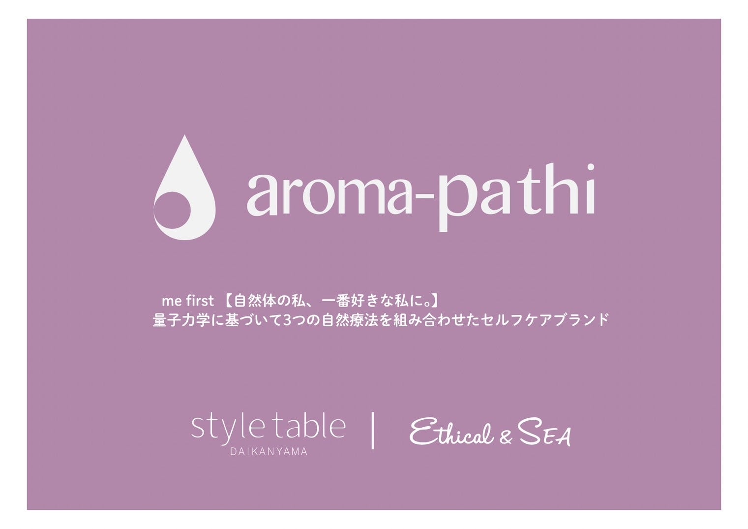 いつも自分を大切に、自然体な自分で居たい全ての方へ。新たな私に出逢うaroma-pathi POPUP 開催中【style table(スタイルテーブル)Ethical&SEA(エシカルシー)】