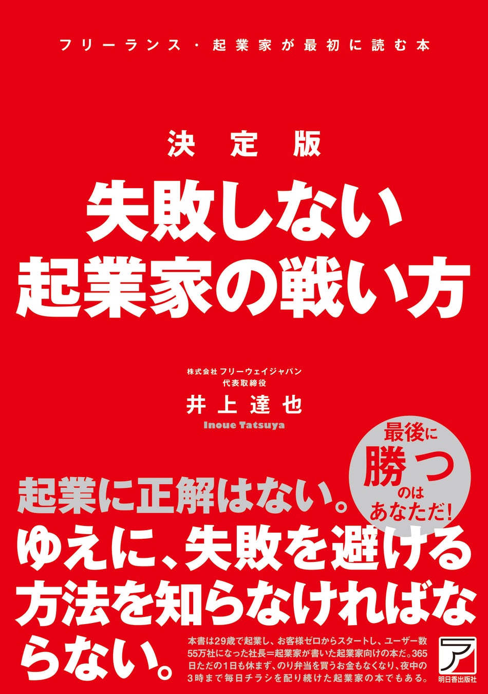 明日香出版社(東京都文京区)は11月13日(水)に、新刊『決定版 失敗しない起業家の戦い方』(著・井上達也)を発売いたしました。