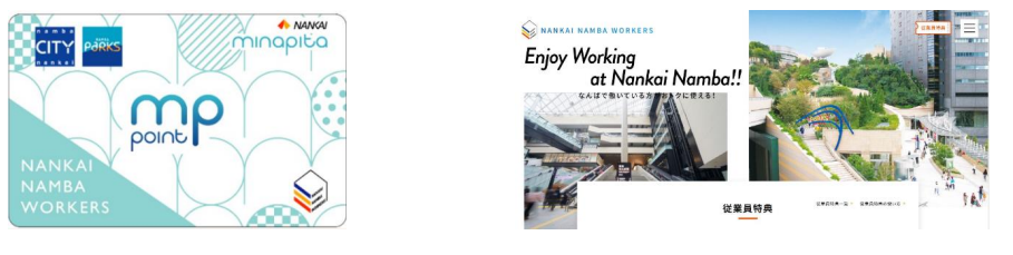 本建物に入居するオフィスワーカーは、南海電鉄が展開しているワーカーサポート施策「NANKAI NAMBA WORKERS」のサービスをご利用いただけます。鉄道事業や不動産事業、流通事業、サービス業など幅広く事業展開を行う南海電鉄ならではの優待やサービスを提供し、なんばエリアで働く皆さまの満足度向上や 「なんばエリアで働きたい」という機運の醸成を目指しています。