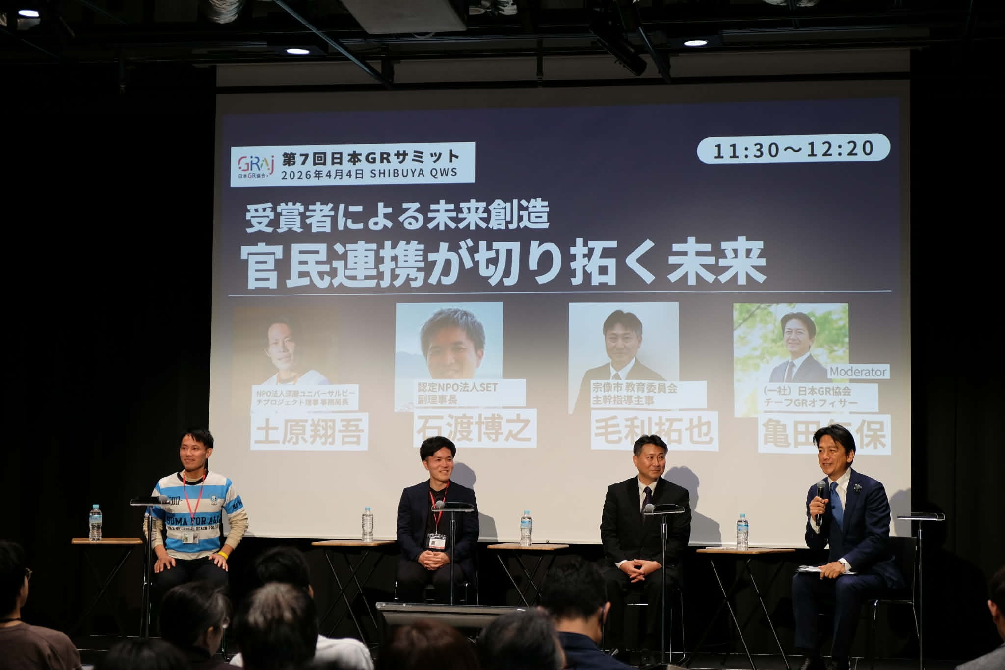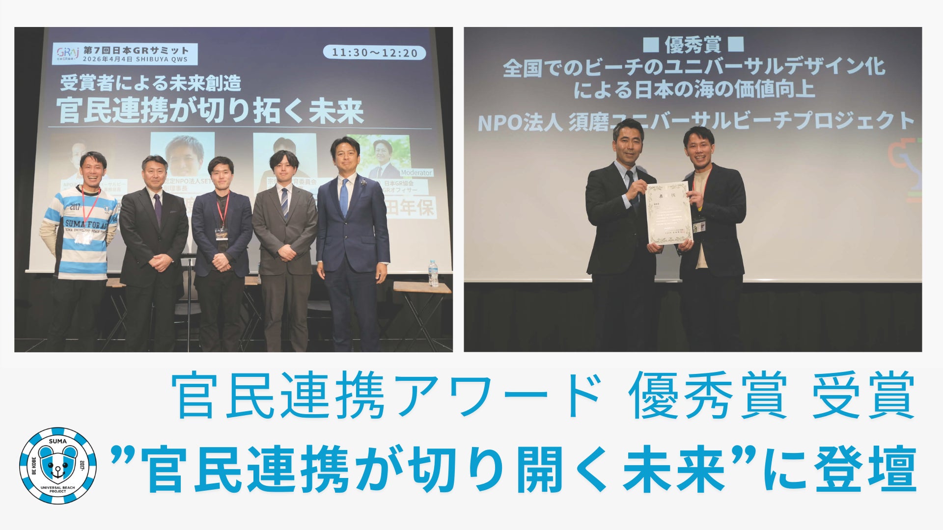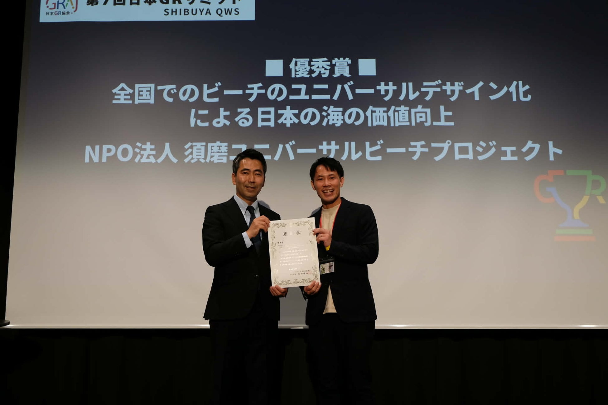 障がいがある人もない人も、誰もが一緒に楽しめるビーチづくりを目指す NPO法人須磨ユニバーサルビーチプロジェクトは、一般社団法人日本GR協会が主催する第4回GR_官民連携アワードにて優秀賞を受賞。4月4日(土)SHIBUYA QWSにて開催された第7回 日本GRサミット supported by チェンジホールディングスにて〜官民連携が切り拓く未来〜セッションにて理事事務局長の土原が登壇いたしました。