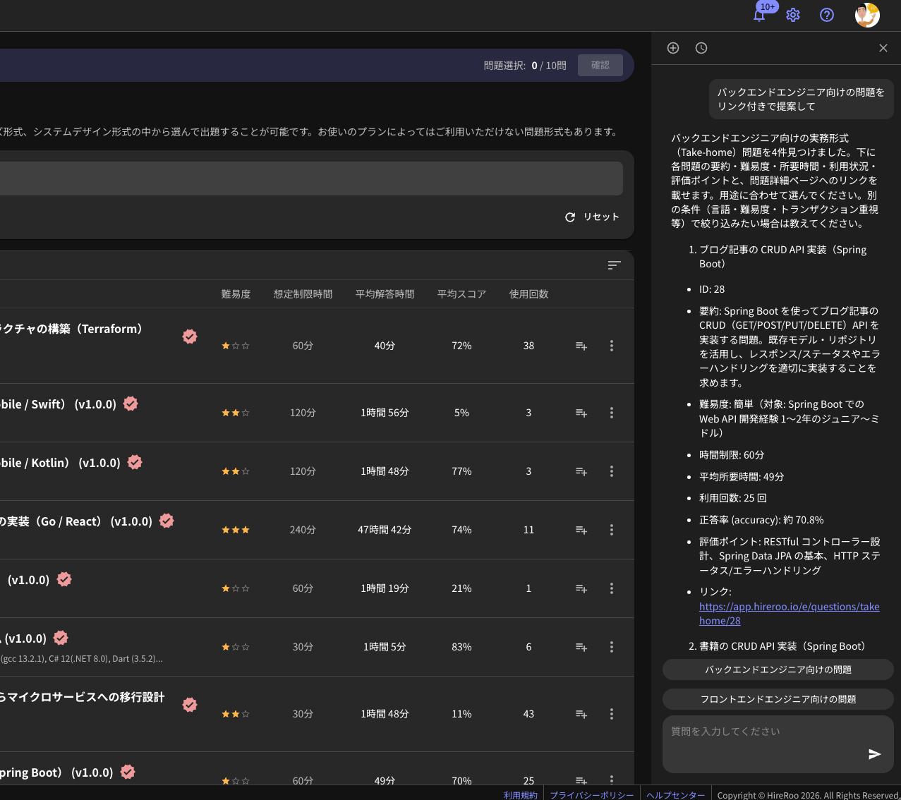 これにより、エンジニアリングに関する専門知識がない採用担当者の方でも、採用意図を反映した問題選定が簡単に行えるようになります。