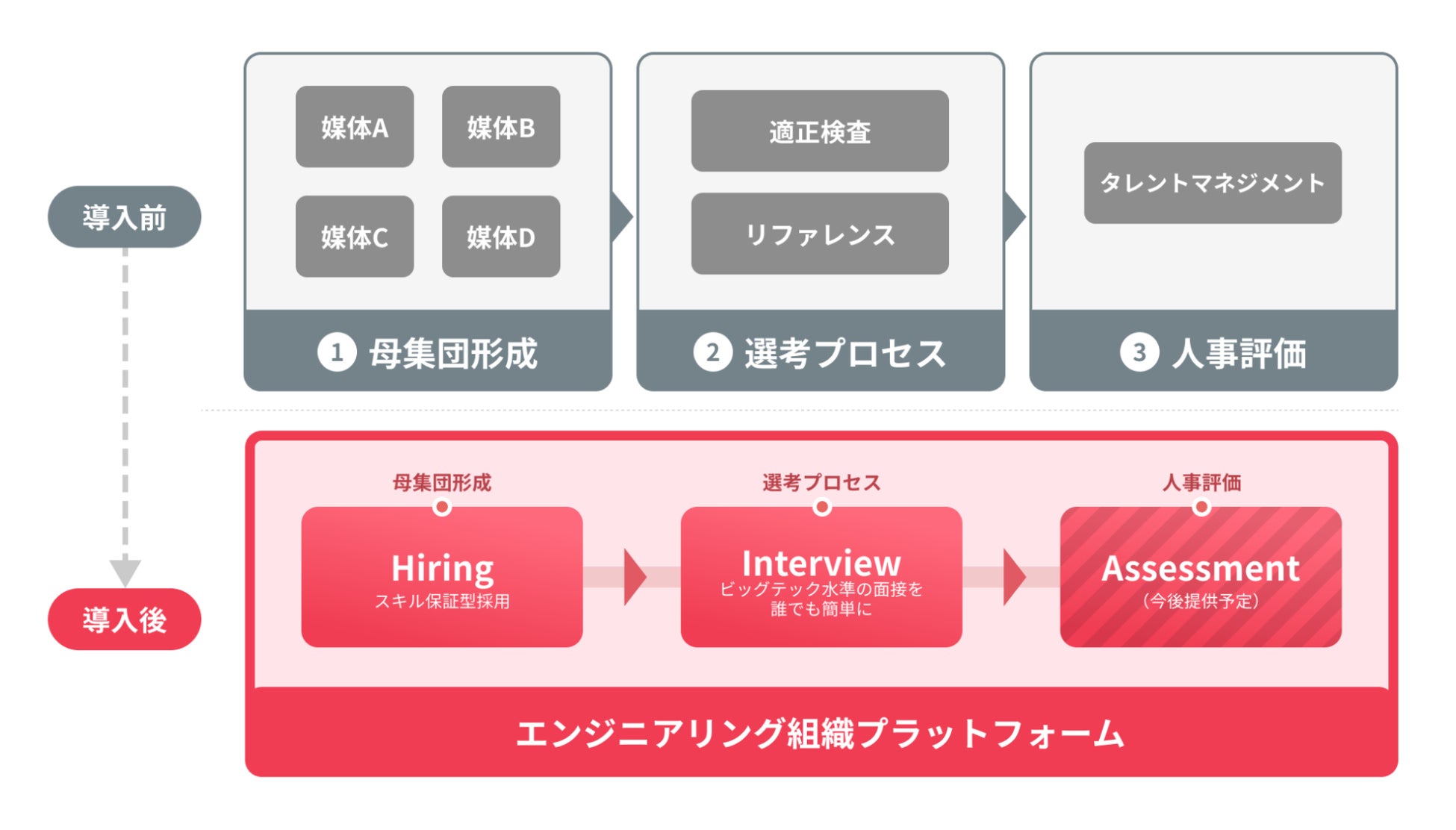 今後は、「スキル」を中心に据えた採用のエコシステムの構築に取り組み、「日本をもう一度、“モノづくり”で一番へ。」というミッション実現のため「エンジニアリング組織向けプラットフォーム企業」の実現に向けて尽力いたします。