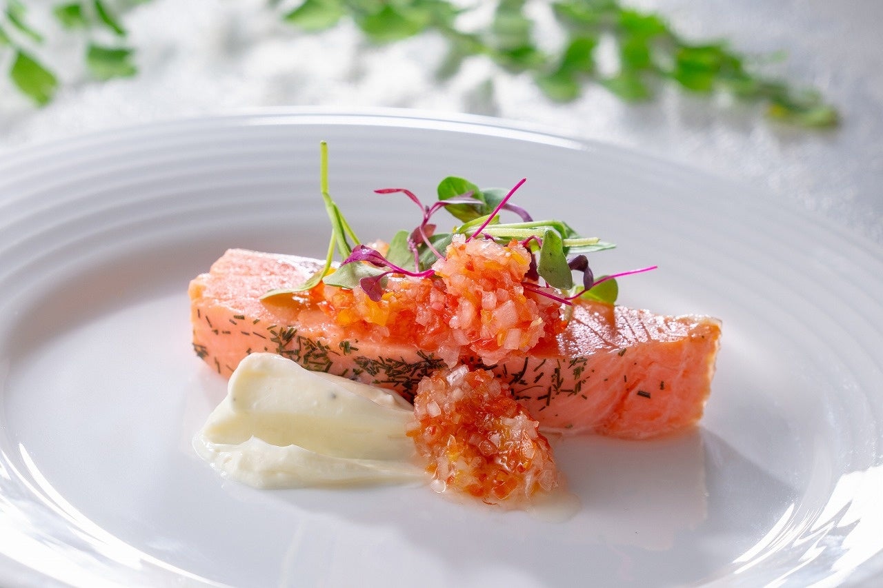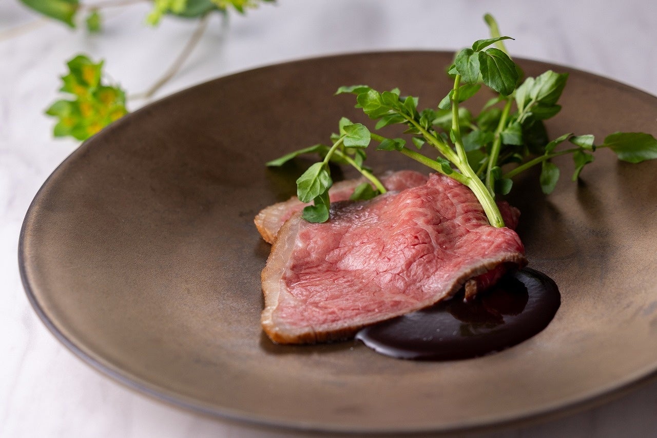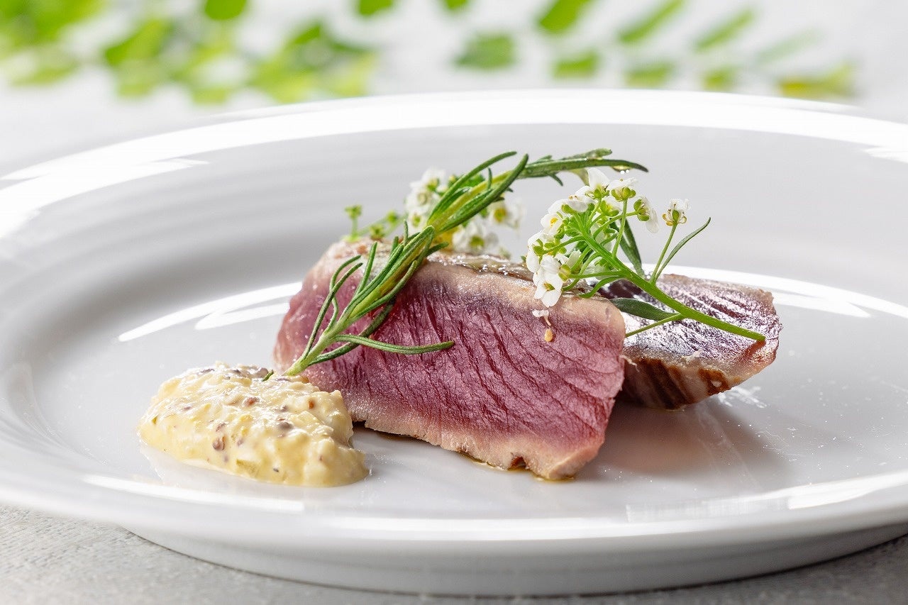 フレンチの技が光る“ミ・キュイ仕立て”の鮪は、レア感と香ばしさのいいとこどり。表面は香ばしくグリルしながら、中はとろりとした舌ざわり。素材の魅力を最大限に引き出した夏のごちそうです。
