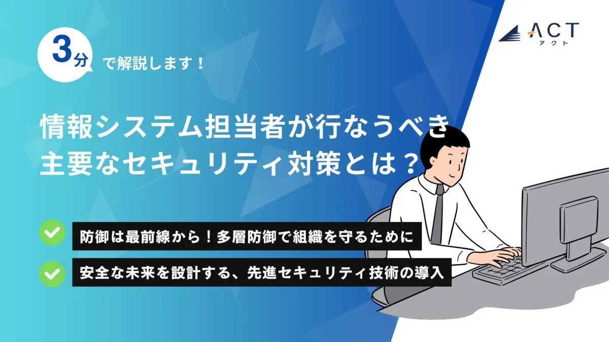 今年30周年を迎え、サイバーセキュリティ事業などを行う株式会社アクト(本社:東京都文京区、代表取締役CEO 小林 智彦 、以下 アクト)は【3分で解説!情報システム担当者が行なうべき 主要なセキュリティ対策とは?】のホワイトペーパーを公開しました。