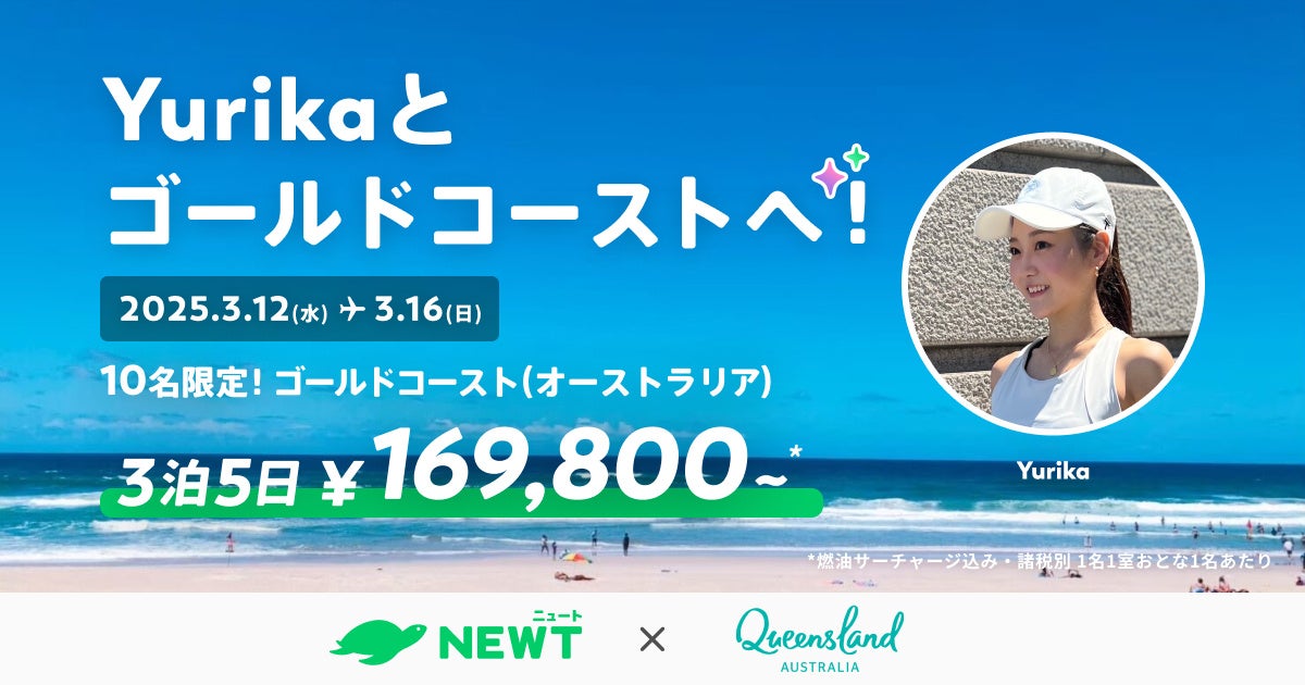 海外旅行予約アプリ『NEWT(ニュート)』、「Yurikaとゴールドコーストへ〜大自然に元気をもらう旅〜」を開催