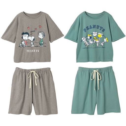Cupopから、みんな大好きスヌーピーのかわいいプリントが推せるパジャマが新登場!これからの季節にぴったりのTシャツとハーフパンツのセットです。綿100%で肌にやさしく、ゆったりとしたシルエットなのでリラックスして着用していただけます。袖やパンツ丈も短すぎずちょうど良い肌見せ具合なのも安心!パンツには、左右ポケットが付いているので便利です。