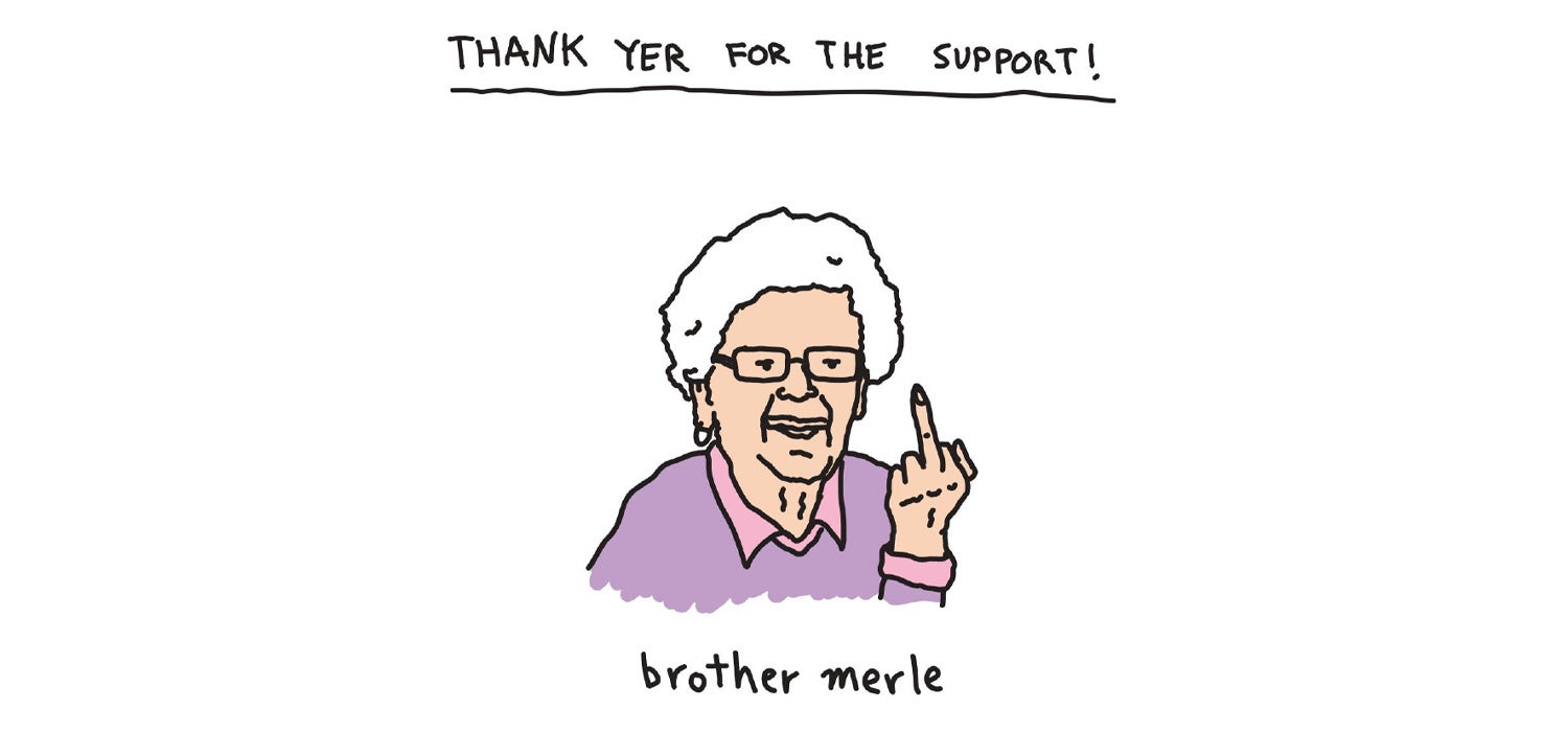 Brother Merleの由来はパンクシンガーのGG Allinの兄Merle Allinからきています。イラストレーターのキャリアをフォーカスする為に2014年にBrother Merleをスタートさせました。Brother Merle Artworkの名の下にユニークなスタイルで世界のユーモアのあるイラストやアートワークを展開しています。