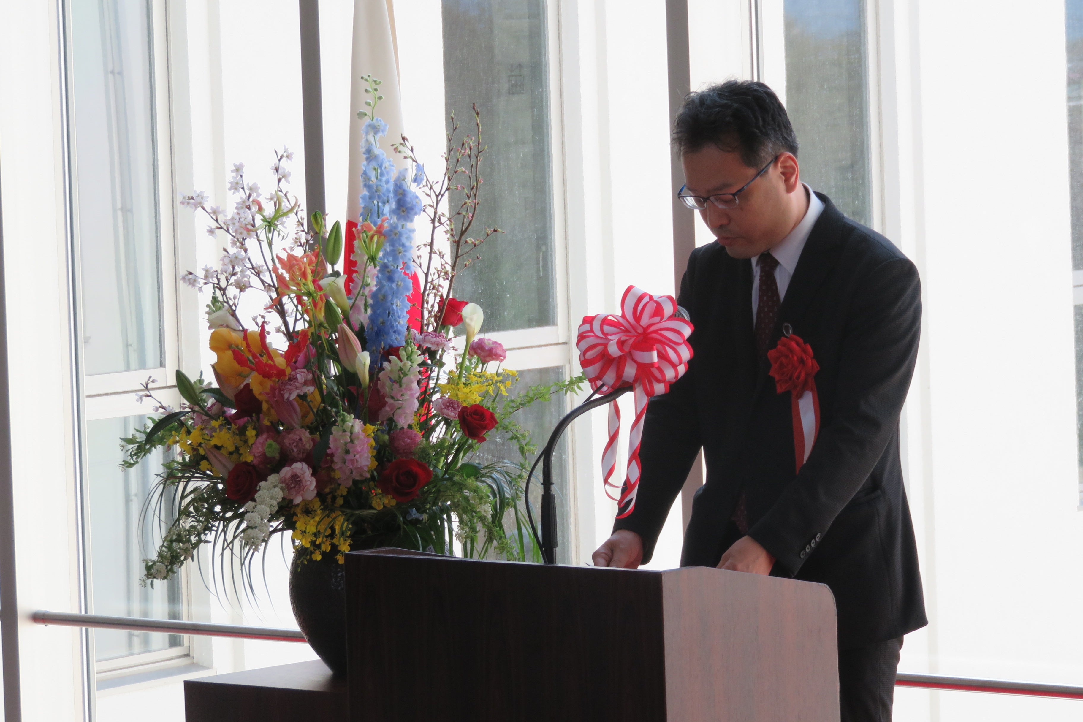 技術研究組合FC-Cubic理事長 濱村様より「FC-Cubicは、技術や志を集積させ、産業育成や発展の構想が明確に示されている山梨県のビジョンに共感し、Nesradへの入居を決めました。本日の開所式を機に、未来の水素社会づくりに貢献する気持ちがより一層高まり、皆様の期待に応える更なる技術の創出を願い日々の研究に邁進していきたいと考えております。」と、ご来賓祝辞をいただきました。