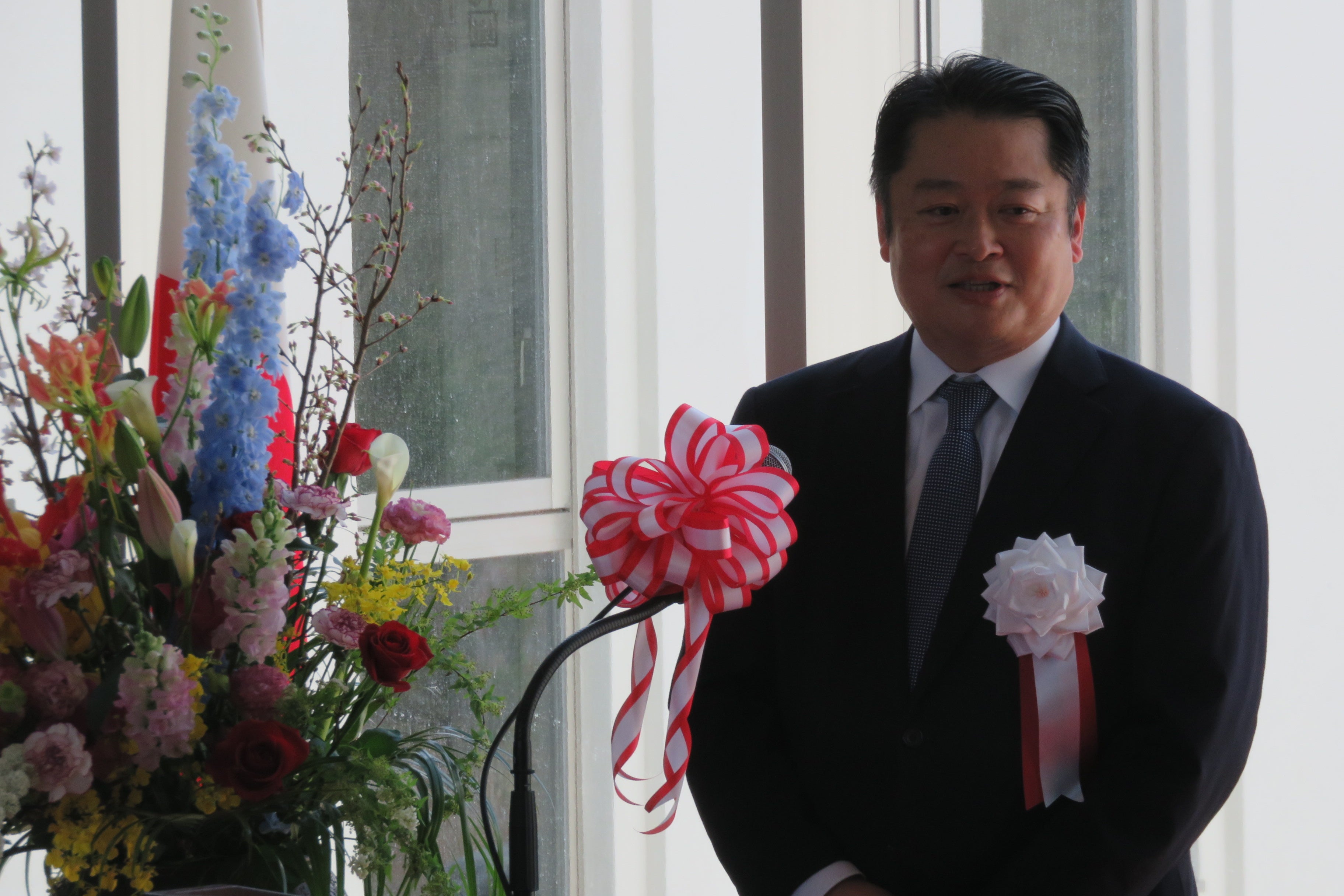 山梨県 長崎幸太郎知事より「水素・燃料電池および蓄電システムに関して世界最先端の研究を行う9つの団体が、このNesradに入居しスタートします。水素などの次世代エネルギーに関しては、国内に光り輝く多くの技術を一つのシステムとして取りまとめ社会実装を進めていく必要があると考えています。そのための技術や人材を集積し、多様な分野でトップレベルの研究者が交流、連携することでイノベーション創出に繋げていくことが重要であり、山梨県として次世代エネルギーや様々な技術や人が集う、世界に拓かれた「開の国」の実現を目指し取り組みを進めて参ります。」と、ご挨拶をいただきました。