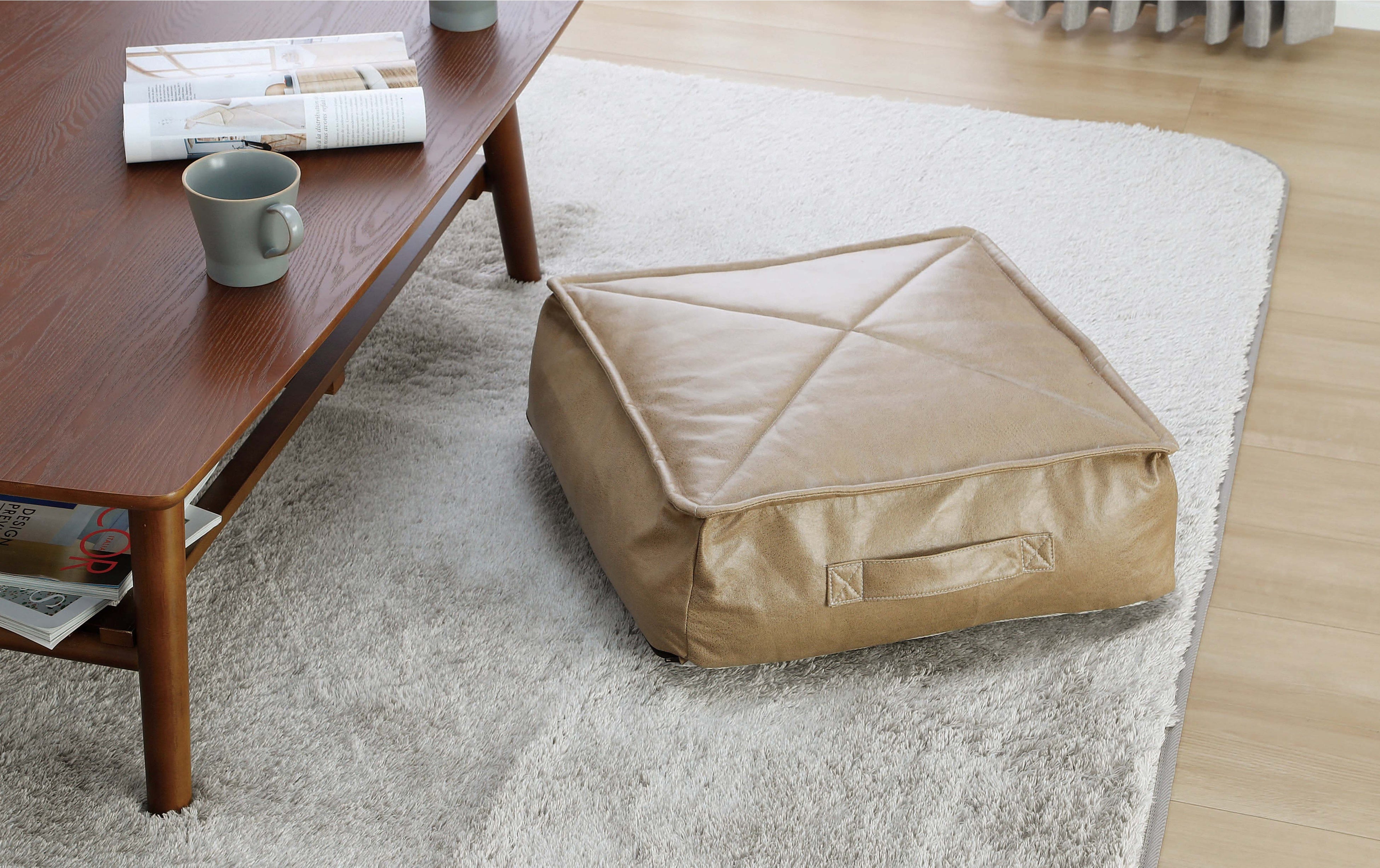 季節の変わり目になるとラグや布団を変える方も多いと思いますが、サイズも大きくかさばるため、収納場所に困りませんか。この度、コメリより新たに発売される、「収納にもなるクッション」は、そのままクッションとして使用するのはもちろん、ラグや布団を入れて、収納クッションとして使用できる商品です。サイズが大きくかさばるラグや布団も、クッションとして使用すると、収納スペースが節約できます。また、高級感のあるアンティーク調のフェイクレザーを使用し、カラーもベージュ・ブラック・グリーンの3色ご用意しているため、どんなお部屋にも合わせやすいクッションです。