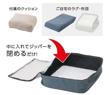 中のクッションを取り出して、ラグや布団を収納できる コメリオリジナルブランド Athena Life(アテーナライフ)より「収納にもなるクッション」が新登場!