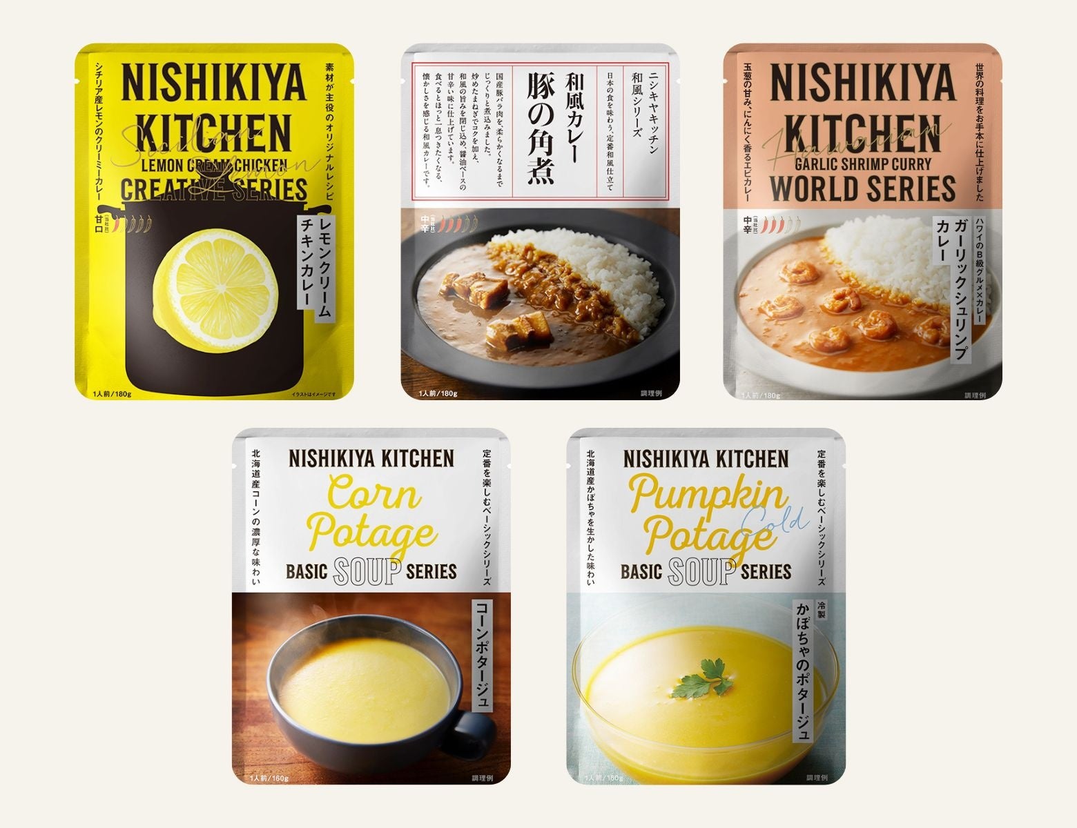 前身の自社ブランド「にしきや」は2011年に誕生しました。そして、そのブランド立ち上げから約10年後、生活が劇的に変化するなかで改めてブランドの使命を見つめ直し、皆さんのキッチンのような存在になれればという想いを込めて、2021年に『にしきや』から『NISHIKIYA KITCHEN』へと生まれ変わりました。皆さんに代わり手間ひまかけた料理をレトルトパックという小さな鍋に詰めてお届けしています。料理をつくる負担がもっと軽くなり、大切な時間が少しでも増えることを願っています。