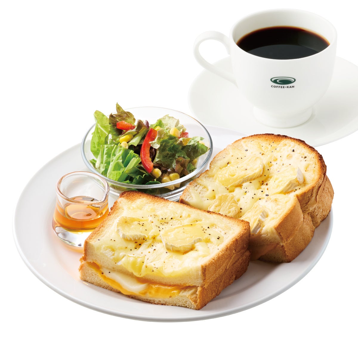 『珈琲館』全205店舗を対象としたコンテストの頂点。スタッフのアイデアから誕生した、珈琲のための“とろあま”新メニュー『たっぷりチーズのクアトロフォルマッジサンド』が12月9日より新発売