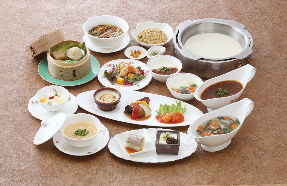 ◇フカヒレと白木耳の茶碗蒸し ◇とうふしゅうまい ◇湯葉豆腐と季節野菜の上海風醤油あん掛け