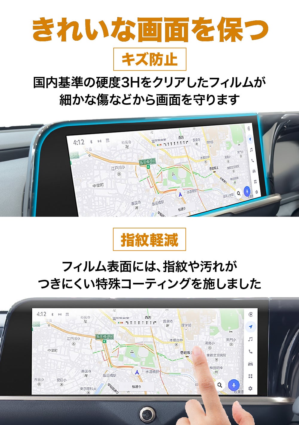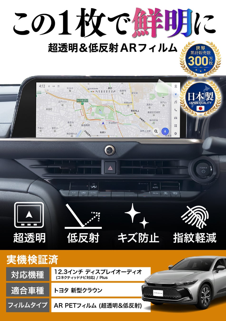 トヨタ クラウン (CROWN)の12.3インチカーナビ画面を傷や指紋から守る便利グッズ「カーナビ守る君 保護フィルム 超透明&低反射タイプ」内装カスタムにおすすめのアクセサリー。納車前の準備に
