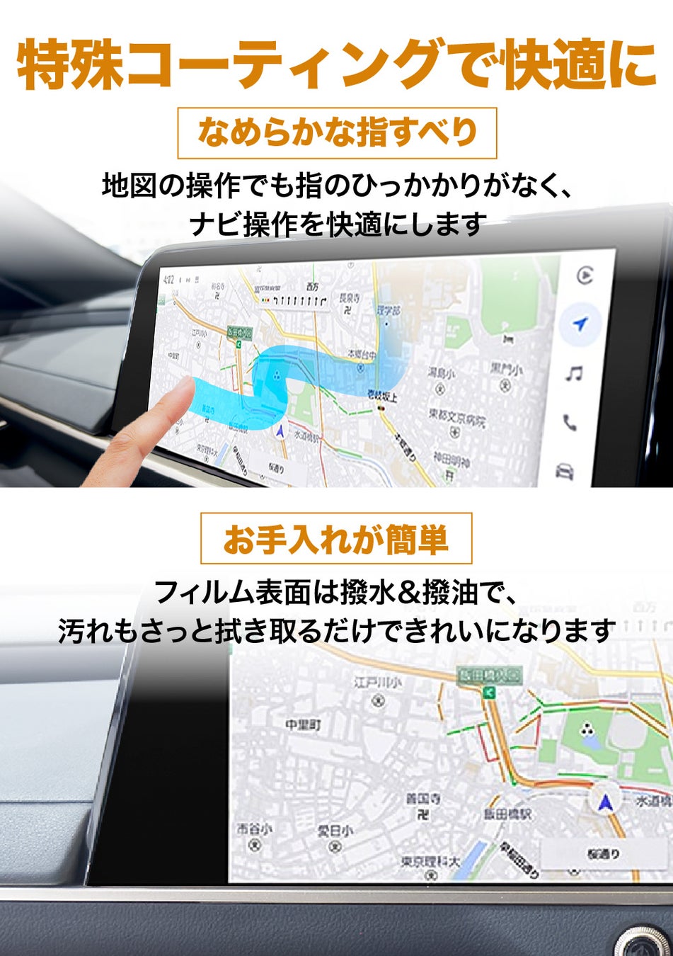 特殊コーティングにより、地図の操作でも指のひっかかりが少なく、ナビ操作を快適にします。