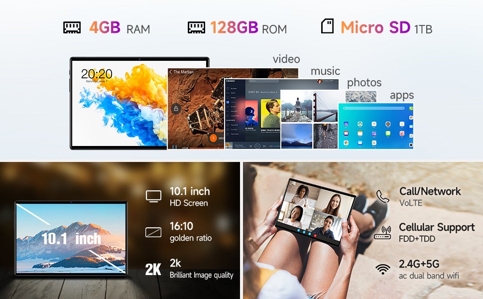 10.1インチIPS画面のフルHD解像度は1920×1200、ゴールデンディスプレイレシオは16:10です。低ブルーライトモード、読書モードには、ブルーライトを低減し、有効的に目を保護します。6000mAhの大容量ポリマーリチウム電池を使用すると、タブレットのバッテリー寿命が長くなり、充電も速くなります。