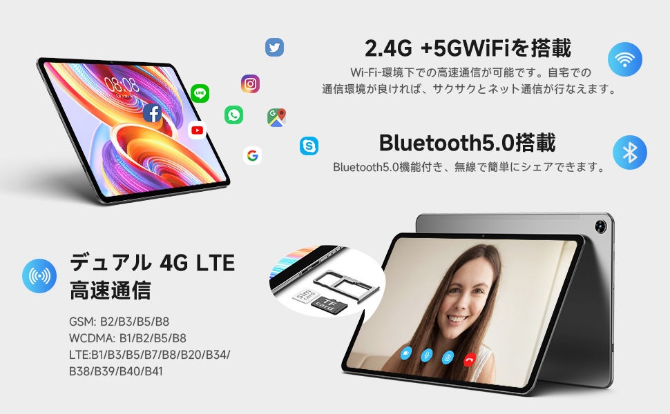 デュアルSIM /Micro SDスロットとTD-LTEおよびFDD-LTE 4Gネットワークのサポートにより、仕事と生活を自由に切り替えることができます。高速ACデュアルバンドWi-Fiと効率的なBluetooth5.0ワイヤレス接続により、コミュニケーションとエンターテインメントをいつでも利用できます。